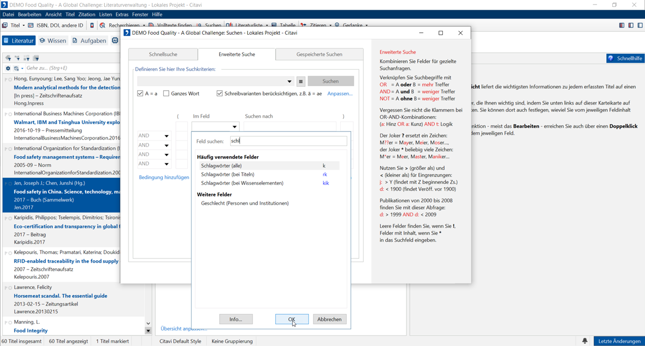 Bei großen Projekten hilft Ihnen die Erweiterte Suche, gezieltere Suchanfragen zu stellen.