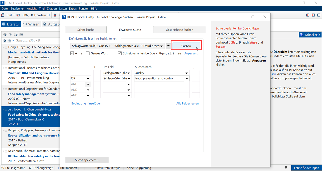 4 Ergänzen Sie weitere Suchbedingungen. Verknüpfen Sie die Bedingungen mit Operatoren: OR, AND bzw. NOT. Klicken Sie auf Suchen.