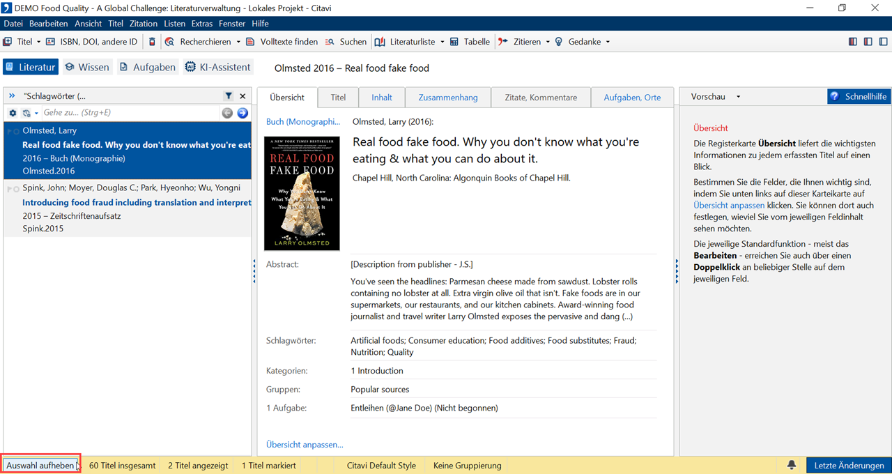 6 Sie haben jetzt die Möglichkeit, die Titel aus Ihrer Suche zu bearbeiten. Um wieder alle Titel zu sehen, klicken Sie auf Auswahl aufheben.
