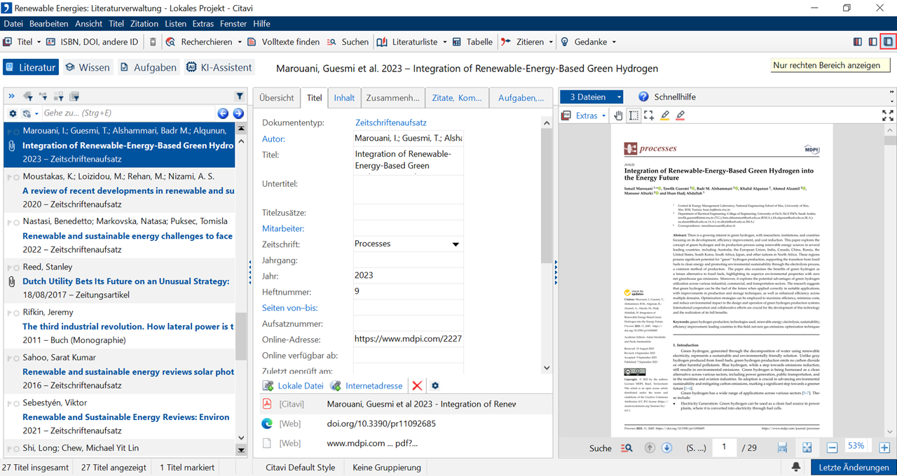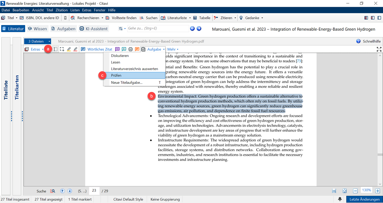 Die Vorschau-Funktion von Citavi bietet eine Reihe von Werkzeugen, um Texte zu annotieren und intensiv auszuwerten.