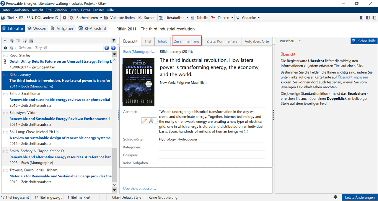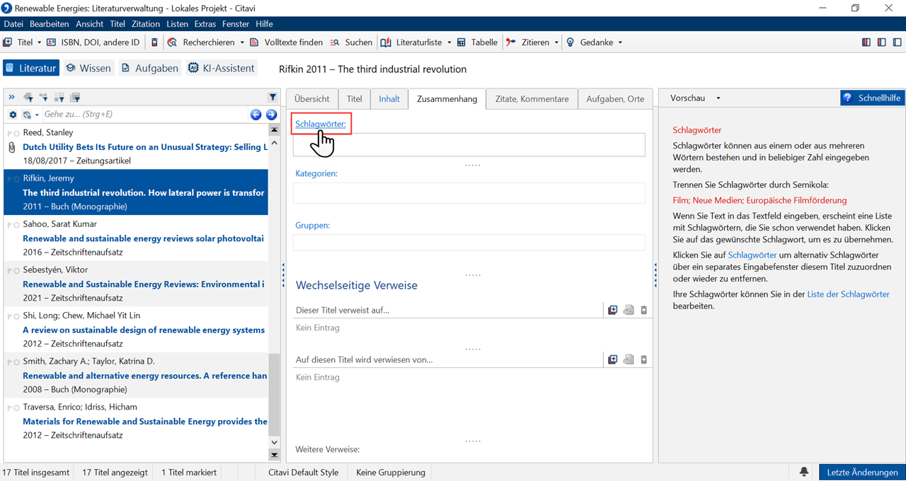 Jeden Titel in Citavi können Sie mit beliebig vielen Schlagwörtern beschreiben.