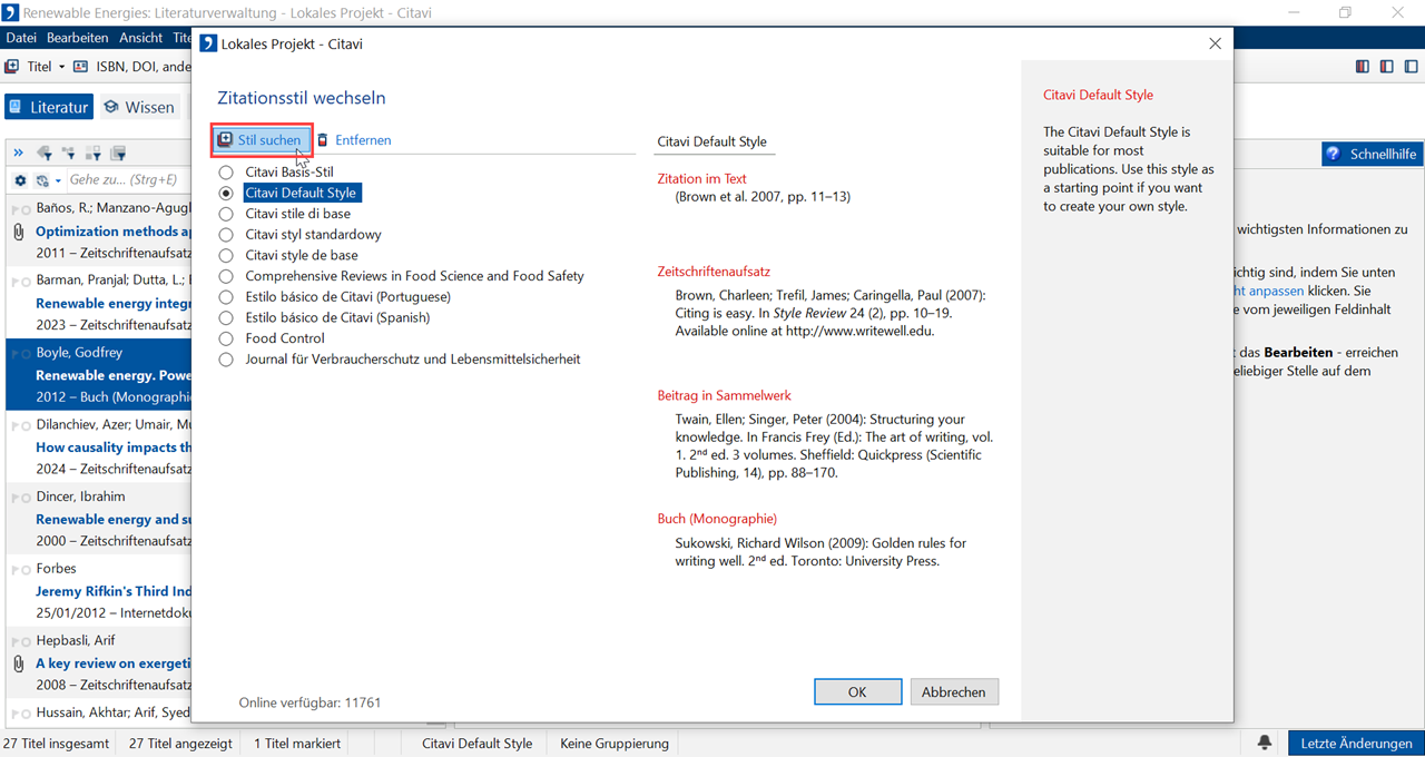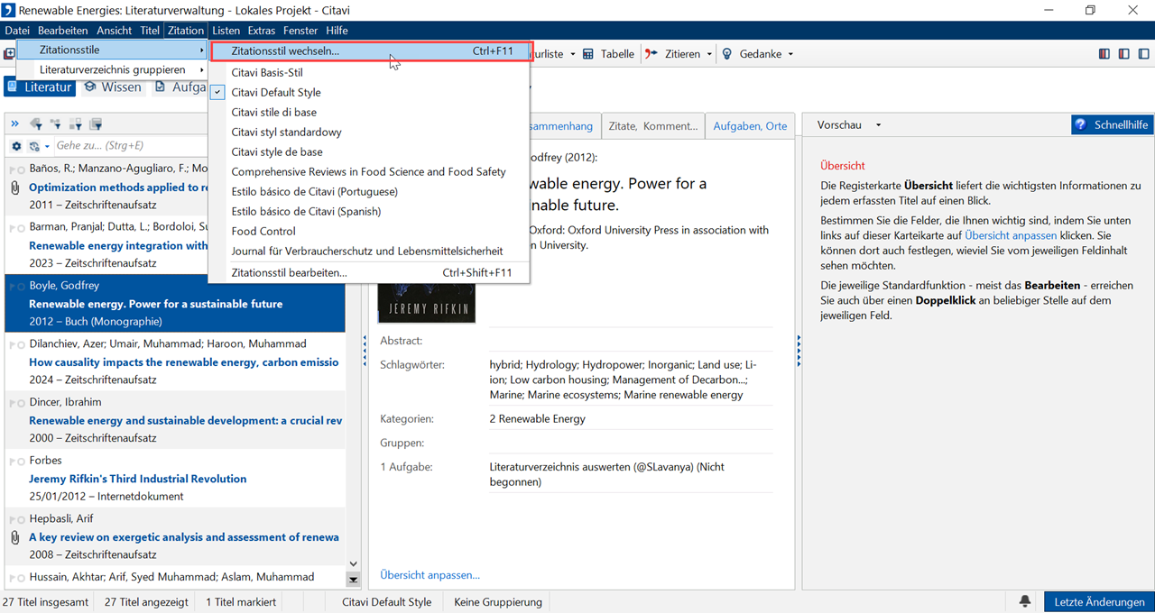 Zitationsstil wechseln