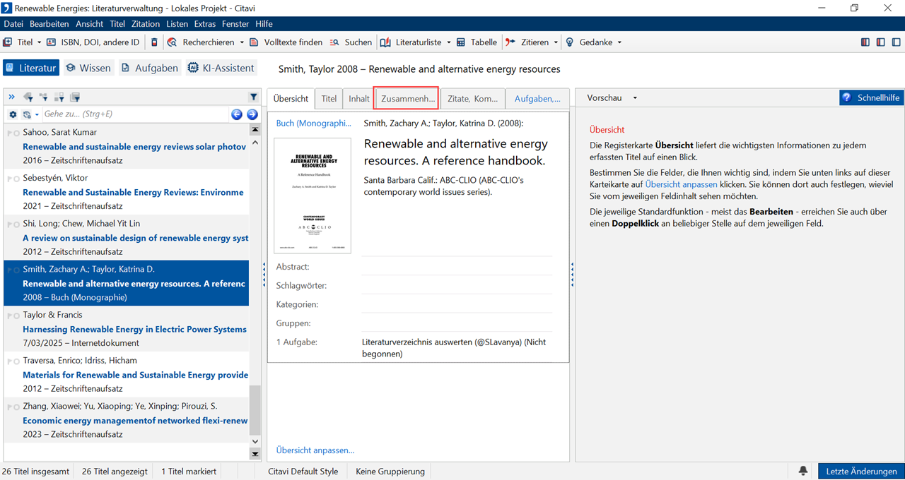 3 Wählen Sie das zu rezensierende Werk aus. Sie können die Art des Verweises dokumentieren: von positiv bis negativ.