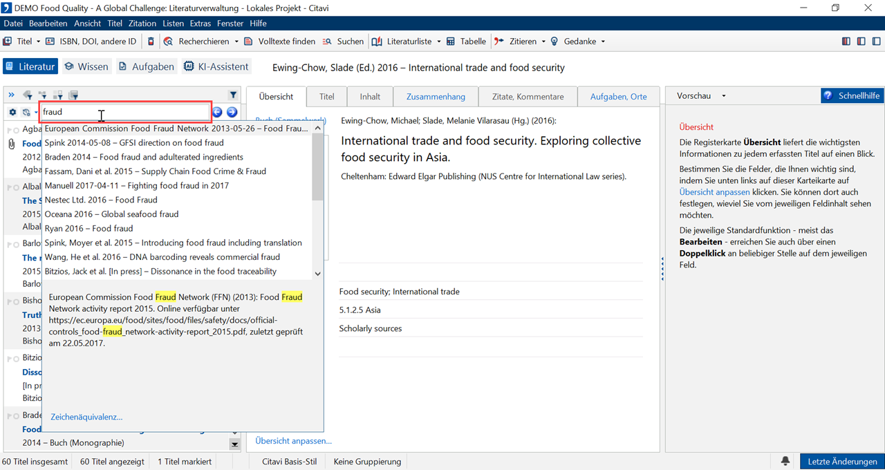 2 Mit der Gehe zu-Funktion (STRG+E) springen Sie direkt einen bestimmten Titel an. Citavi durchsucht dafür alle Felder der Karteikarte Titel.
