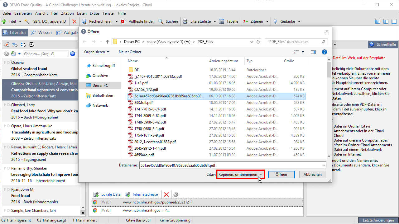 2 Wählen Sie Kopieren, umbenennen mit Kurztitel. (Citavi merkt sich Ihre letzte Einstellung, wenn Sie weitere Dateien verknüpfen.)