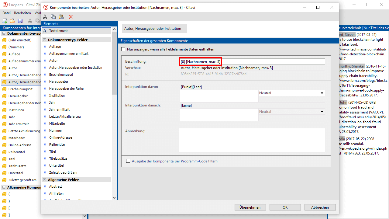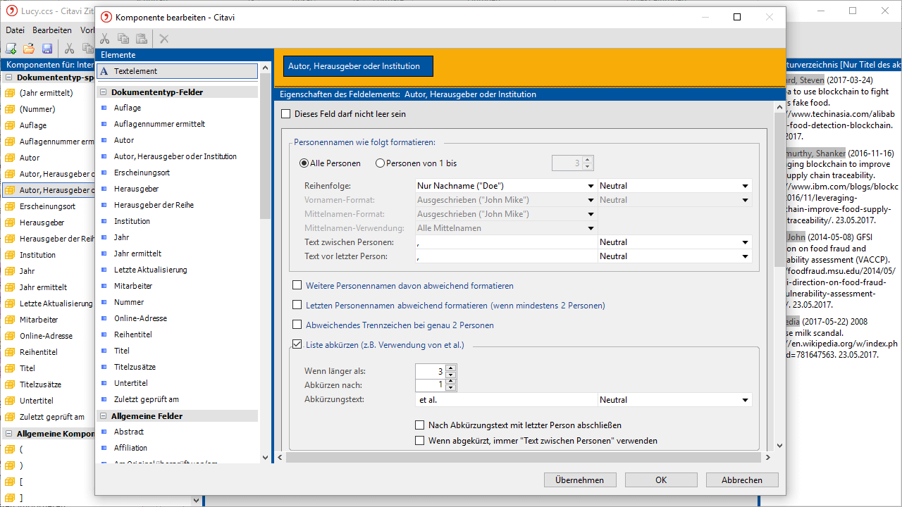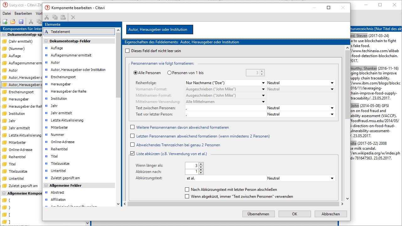 4 Nehmen Sie die gewünschten Anpassungen vor, hier z.B.: maximal drei Autoren sollen nur mit Nachnamen im Text erscheinen.