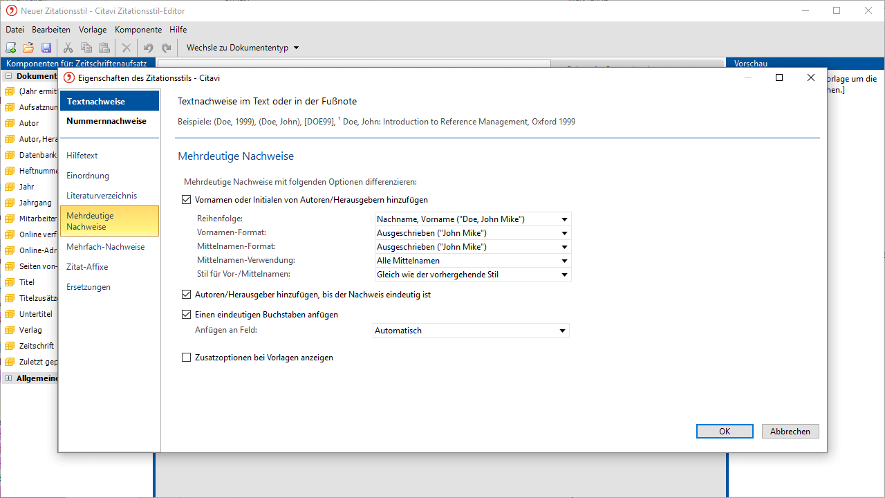 5 Nur für Autor-Jahr-Stile: Legen Sie fest, wie der Stil auf Mehrdeutigkeiten reagieren soll. Mehrdeutige Nachweise können auftreten, wenn Sie mehrere Veröffentlichungen eines Autors aus einem Jahr zitieren (vgl. Kapitel Mehrdeutige Nachweise verhindern).