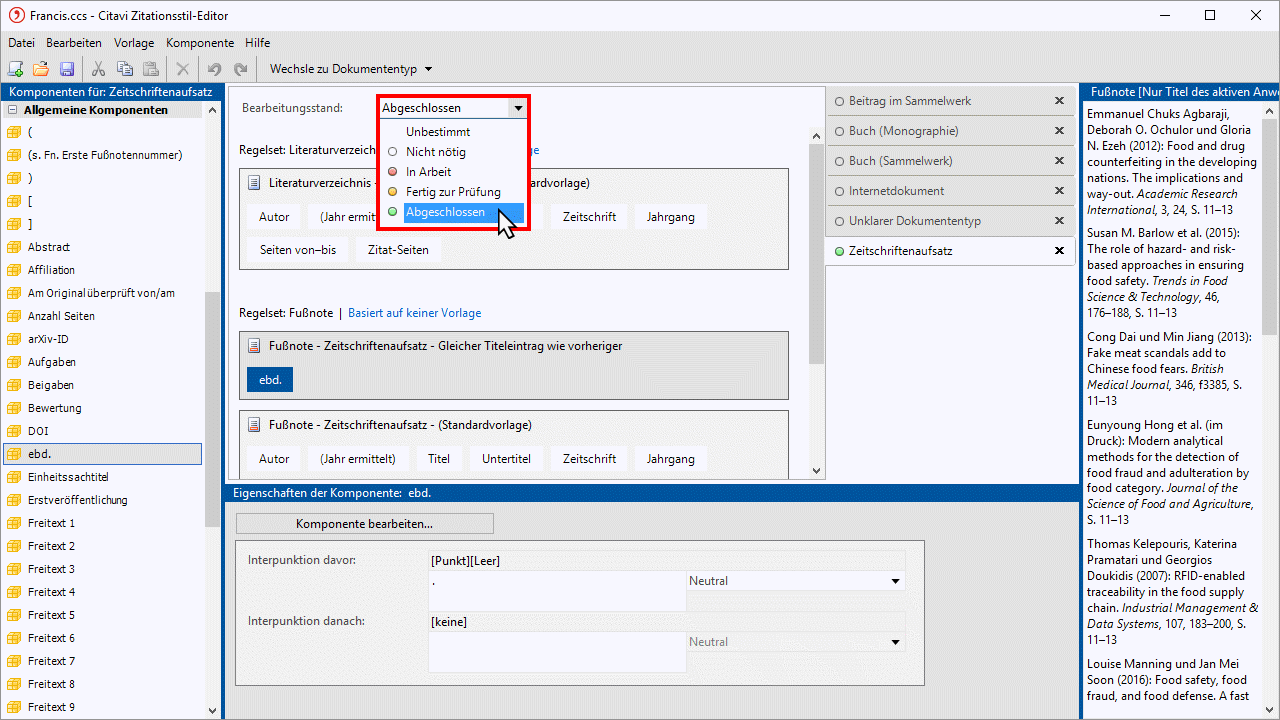 Wenn Sie einen komplexen Zitationsstil erstellen, werden Sie zwischen den verschiedenen Dokumententypen öfter hin- und herwechseln. Um den Überblick zu wahren, dokumentieren Sie Ihre Arbeitsfortschritte.