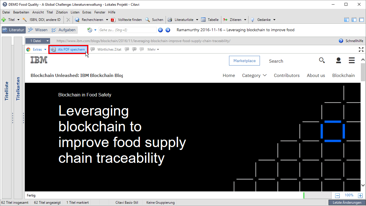 Sie haben eine Webseite gefunden, die Sie als Internetdokument in Ihr Citavi-Projekt übernehmen möchten? Dann achten Sie darauf, dass kein Text und keine Grafik markiert ist, und klicken Sie im Picker-Menü auf Webseite als Titel aufnehmen.